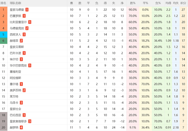 本场过后,在西甲积分榜上,多赛1场的赫罗纳继续垫底。截至目前,赫罗纳前11轮过后,才拿到7分。虽然目前赫罗纳还没有彻底掉队,但是他们已经是公认的西甲降级大热门。